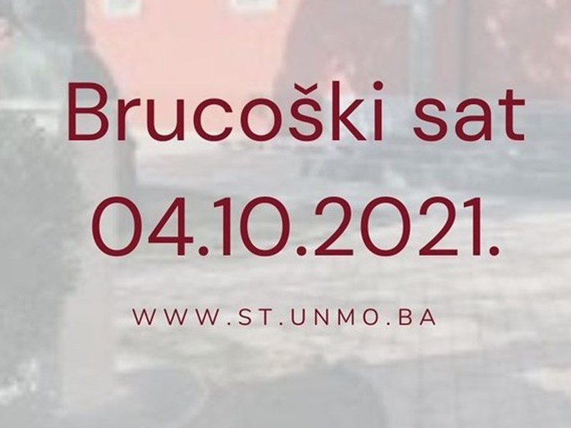 Obavještavaju se studenti, upisani u prvu godinu studija u akademskoj 2021/2022. godini da će se manifestacija "Brucoški sat" održati u ponedjeljak, 04.10.2021. godine, sa početkom u 11:00 sati, na otvorenom, u Kampusu Univerziteta „Džemal Bijedić" u Mostaru.